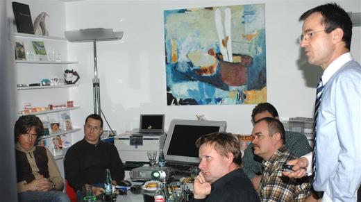 Europaweit einmalig! Unsere Gemeinschaftspraxis ist zusammen mit Prof. Sculean und fünf weiteren Masterkollegen (im Bild oben Mitte Prof. A. Sculean mit Dr. M.Sc. J. Arentz, Hamburg und Dr. M. Sc. P. Kleemann, Dinslaken) an einer wissenschaftlichen Multicenterstudie beteiligt. Prof. Sculean ist Lehrstuhlinhaber an der Univeristät Nijmegen und gilt als einer der renommiertesten und bekanntesten Parodontologen Europas. Am 4. Dezember fand das erste Mastertreffen zur laserunterstützten Parodontitis-Therapie in unserer Praxis statt, um die geplante Kooperation zu besprechen.